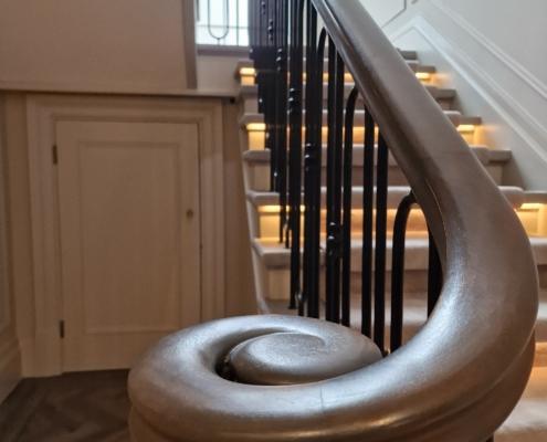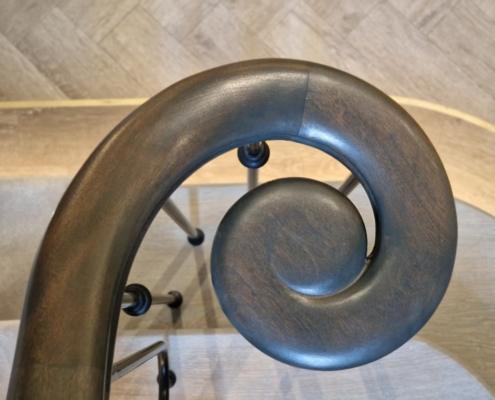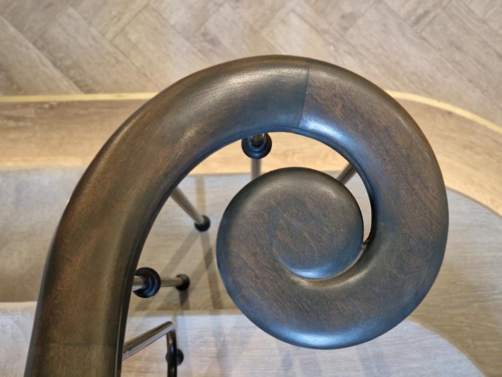 The most standout feature of this project is the fully continuous curved handrail – featuring no newel posts – creating a fluid, uninterrupted form that spans a total of 30 metres. The end result is visually stunning; the gentle curve of each flight sweeping upwards to where it finishes at the impressive gallery above. This entire project showcases the craftsmanship and intricate detailing that Handrail Creations is known for.