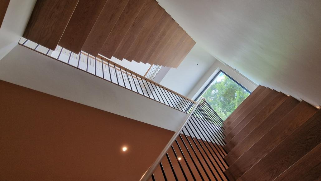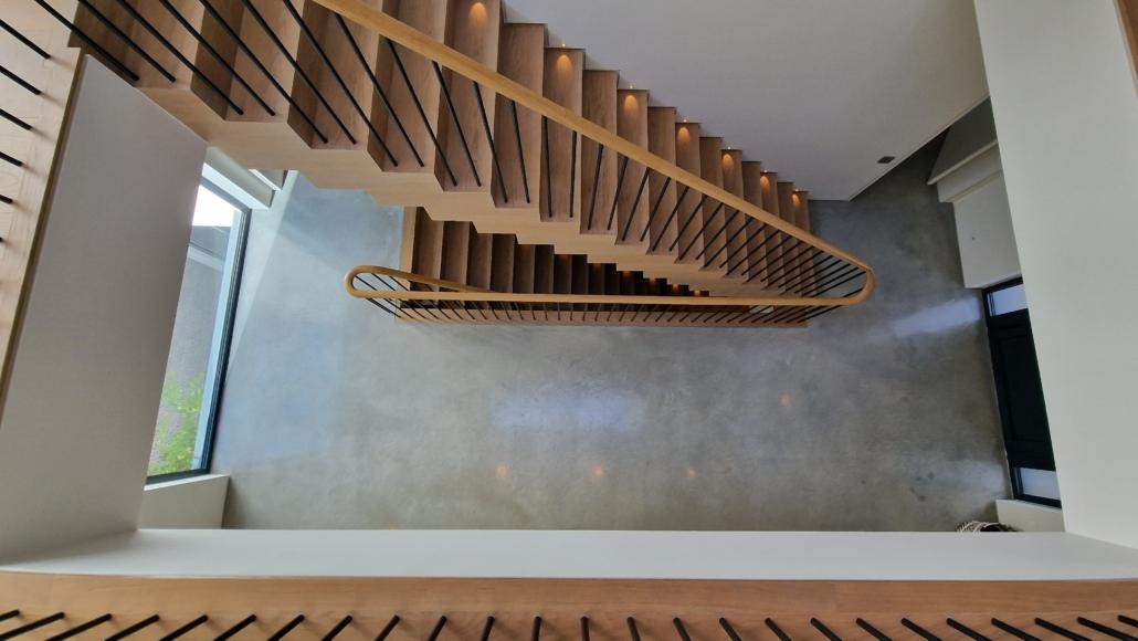 The installation highlights the appeal of a minimalist approach, with no visible collars, welding, or cover plates; every fixing is cleverly hidden to maintain a smooth, uninterrupted aesthetic. The end result is a refined, contemporary handrail system that feels both light and structurally confident.