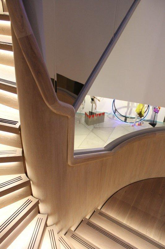 [six12_last][testimonial title=”Harvey Nics, Biringham” body=”We like a challenge, so when we were asked to cap a plywood balustrade with a P shaped handrail, we had a go. The staircase leads to a stylish restaurant at the new Harvey Nics store in Birmingham. The wooden handrails look stunning against the LED backlit stairs, with near invisible joints. With the deadline of the new store looming, our fitting team had just a couple of days to install & polish the wooden handrails with a wash grey effect.